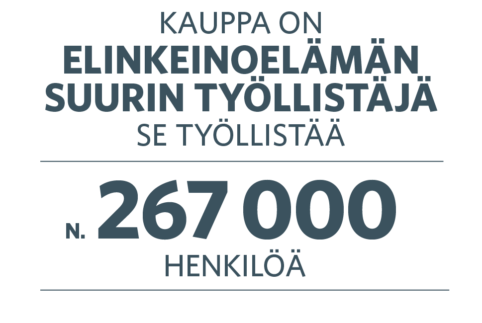 Kauppa on yksi yrityselämän ja Suomen talouden suurimmista toimialoista niin työllistäjänä, talouskasvun luojana kuin myös verojen maksajana. Kauppa työllistää Suomessa noin 267 000 ihmistä, ja jopa joka viides työssäkäyvä alle 25-vuotias nuori työskentelee kaupan alan yrityksessä.